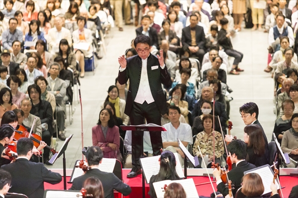 最終日は、少し雨がパラついているにも関わらず、当日券売り場には長蛇の列。初日にフォーレ、2日目にモーツァルトと三大レクイエムのうちの2曲を演奏したローザンヌ声楽アンサンブルは、最終日はブラームス「ドイツ・レクイエム」の公演を行った。通常は管弦楽とともに演奏される作品だが、この日はピアノ連弾と合唱という珍しい編成で、歌声がより際立って聴こえ、精緻なアンサンブルをホール一杯に響かせた。そして、地下のグラーベン広場では、前夜祭でも大きな盛り上がりを見せた、客席も参加できる第九コンサートが開催。指揮の曽我大介、アマデウス・ソサイエティー管弦楽団とともに、客席にも楽譜が配られた。音楽を聴く喜びだけでなく、一緒に歌い、演奏する喜びも味わえるLFJ。大きな歌声が展示ホールいっぱいに広がった。