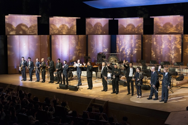 前夜祭でシンフォニア・ヴァルソヴィアとともに、素晴らしいガーシュウィンを聴かせてくれた小曽根真。最終日には自身のバンドNo Name Horsesを率いて、2ステージ連続公演を行った。1stステージでは、まず小曽根1人が登場し、自作の「No Strings Attached」からスタート。曲が進むにつれ、中村健吾(bass)と高橋信之介(Ds.)が加わると、突然客席の両サイドの扉が開き、残りのメンバーが演奏しながら登場。サプライズな登場に、あちこちから歓声と手拍子が沸き起こった。続く「ラプソディ・イン・ブルー」では、鳴りまくりの金管や、次々と自由に繰り広げられるソロ、そして鍵盤の上を右から左へと小曽根の指が踊り、客席の温度も最高潮に。最後は、「サックスの素敵な音色を聴いてください。」と、「Someone to watch over me」の甘いハーモニーが会場を包み込んだ。