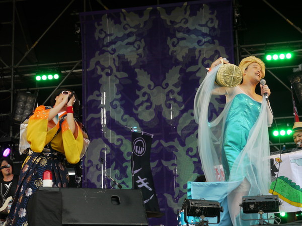 スタート直前まで空を覆っていた分厚い雲が晴れたと同時に、最大規模を誇る<SUN STAGE>に登場したレキシは、昨年、同ステージで怒髪天としてトップバッターを務めた増子直純や、やついいちろうらを次々とステージに招き入れ盛大に幕開けを飾ると、各ステージでも多彩なアクトが展開していく。